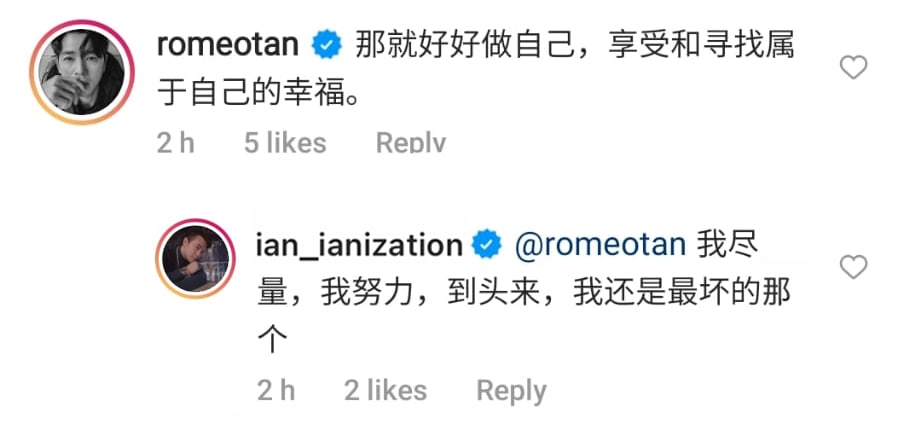 Ian’s reply to Romeo? “I've done my best. I've worked hard. I've still become the most wicked person at the end of the day. Wicked? Say what? We don’t know, especially because this response has since been deleted.