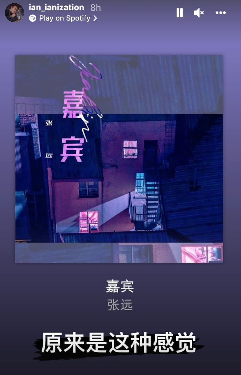 What looked like an innocent song recommendation (which Ian had posted much earlier in the day) also takes on a different significance if one were to read into it: Zhang Yuan's song Jia Bin (‘Guest’) is about how a man feels when he attends his ex's wedding.