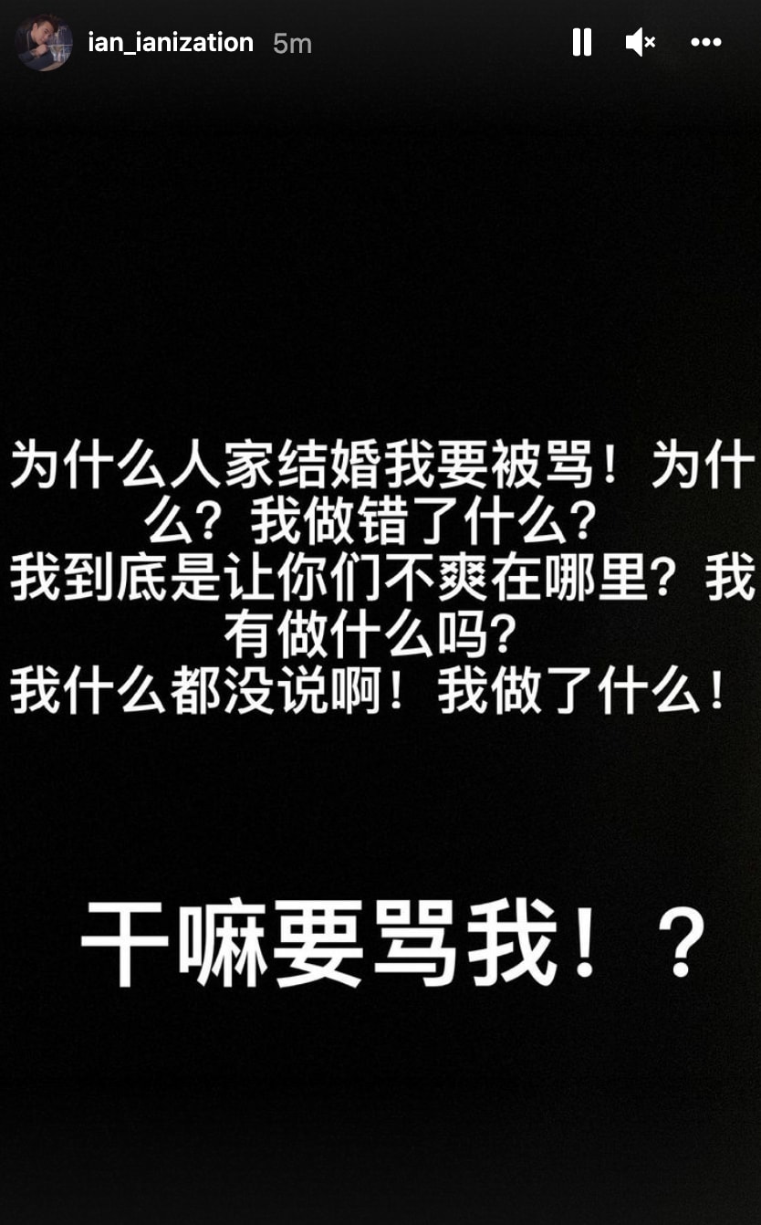 He also shares an angry rant on IGS asking why he is “getting scolded when someone else is getting married”.