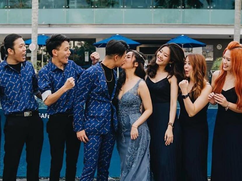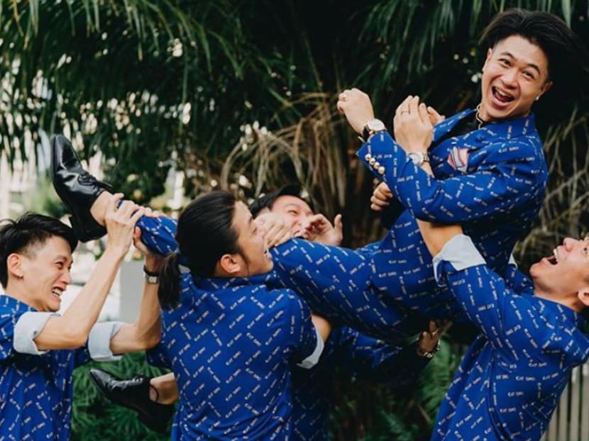 Then on Sunday (Mar 29), he and Lizy tied the knot in a small ceremony in a hotel. Maxi's best men were his Ah Boys To Men buddies Noah Yap, Joshua Tan, Wang Weiliang and Tosh Zhang. Fun fact: All five actors were the stars of the original ABTM movie in 2012, and have remained close pals since then.