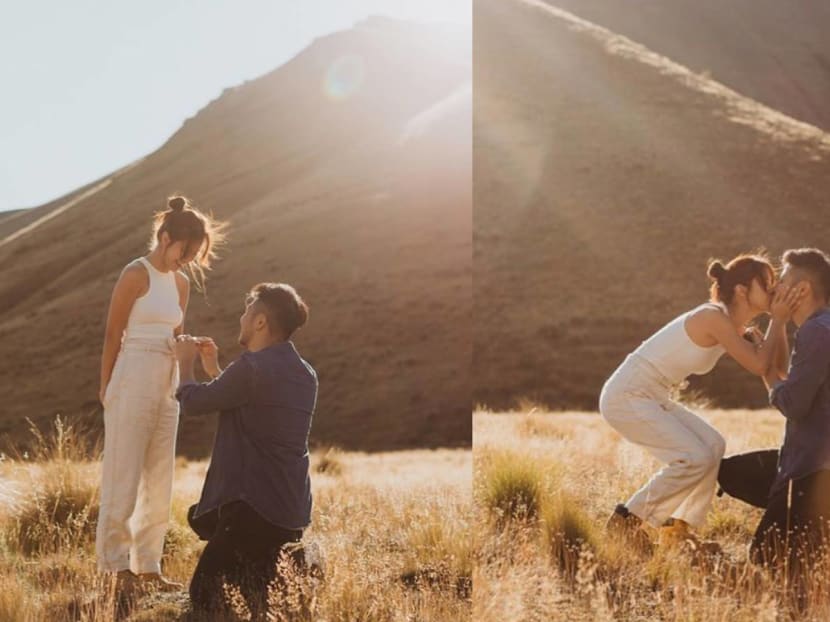 And joining the love fest yesterday is Benjamin Kheng, 29, who revealed last night (Mar 13) that he proposed to his girlfriend Naomi Yeo, 26, while they were holidaying in New Zealand. In case you were wondering, the actress-host said yes even before he popped the big question when they visited Lindis Pass.