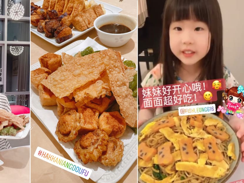Yummy factor: Yvonne spent an entire day in the kitchen whipping up trays of Hakka-style yong tau foo for her loved ones, and the wide variety of fried goodies — think stuffed tau kwa and eggplant, fried beancurd skin and more — look absolutely tempting. In fact, they were an excellent complement to the homemade fried noodles (topped with the cutest bear-shaped fish cake) from good friend, Mandopop singer Fish Leong.