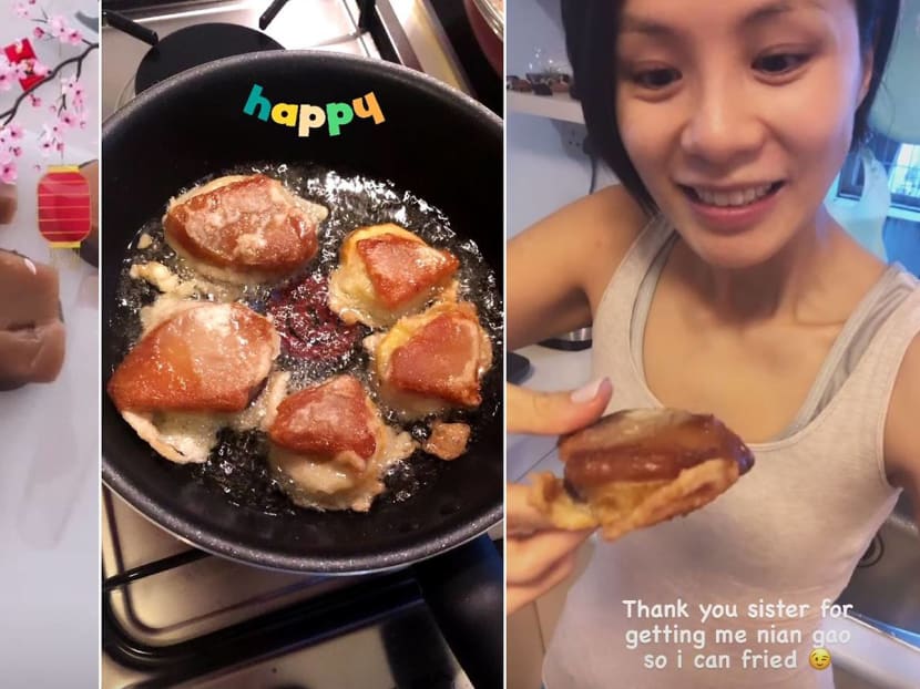 Yummy factor: Tracy fried herself some traditional nian gao as a festive snack, and it’s one of those things that appear nondescript yet taste oh-so-shiok with its crisp eggy outer layer and gooey centre.