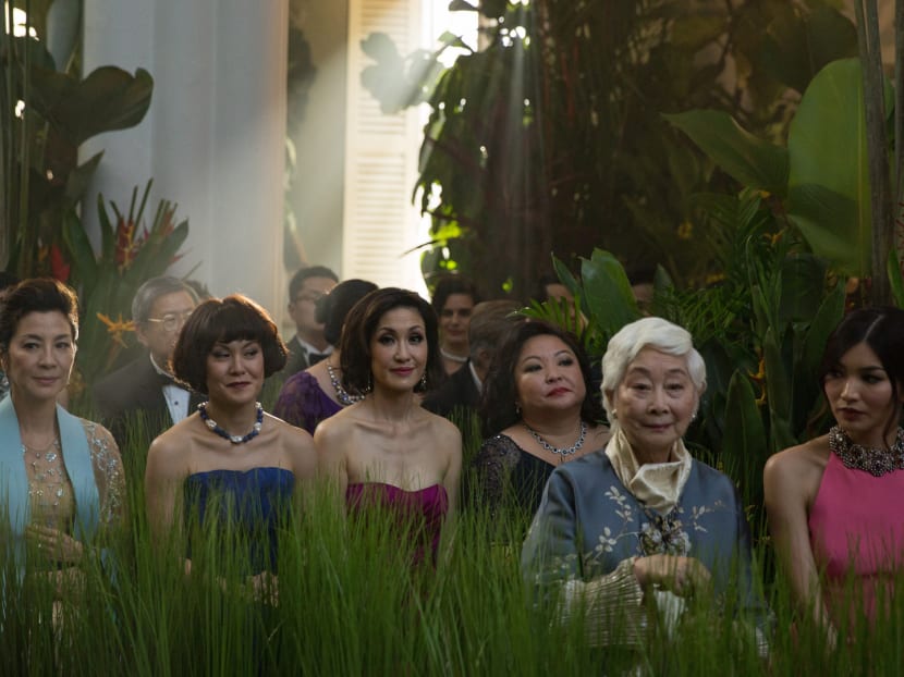 Wedding in progress: Janice Koh with Michelle Yeoh, Amy Cheng, Selena Tan, Lisa Lu, and Gemma Chan, in a scene from Crazy Rich Asians.
