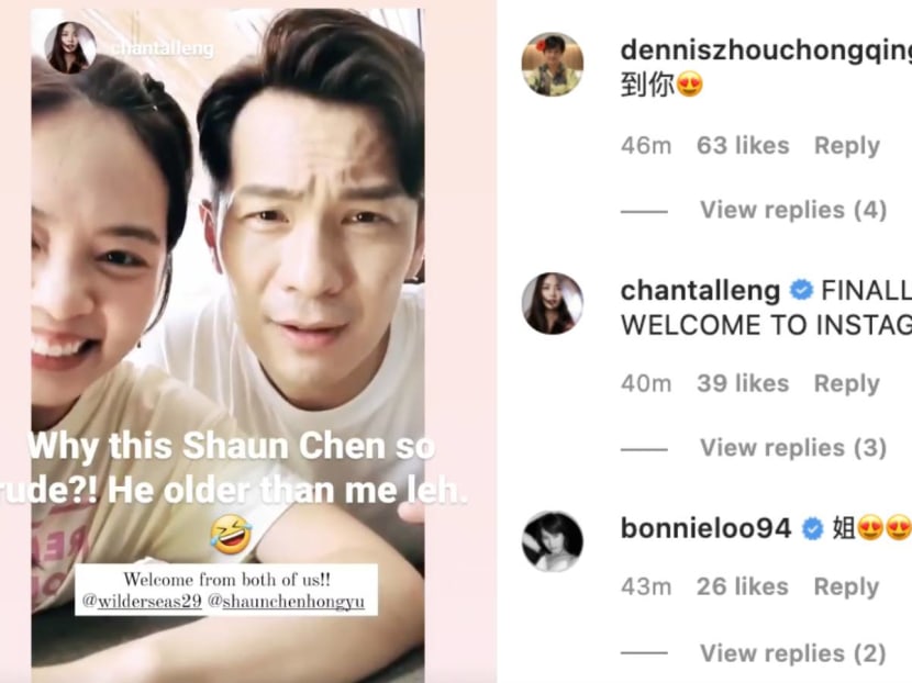 Chantalle also posted a hilarious IG Story that featured Shaun Chen to announce Rui En's arrival on the platform. In the clip, Chantalle and Shaun are seen ooh-ing and ahh-ing over what we assume to be Rui En's IG.