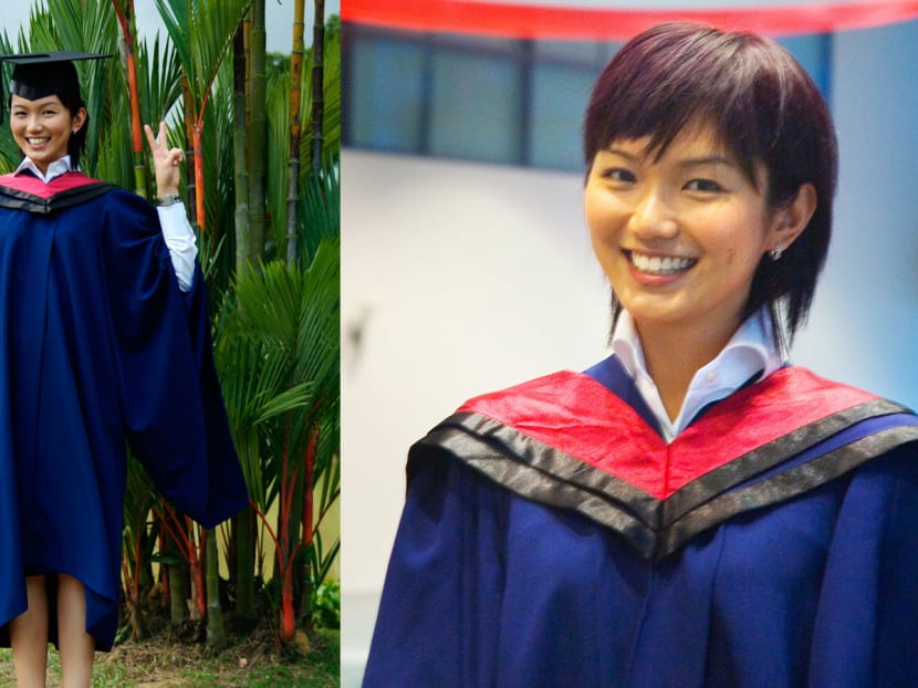 A bright-eyed and bushy-tailed Joanne wore a playful grown-out pixie cut for her convocation in 2006.
