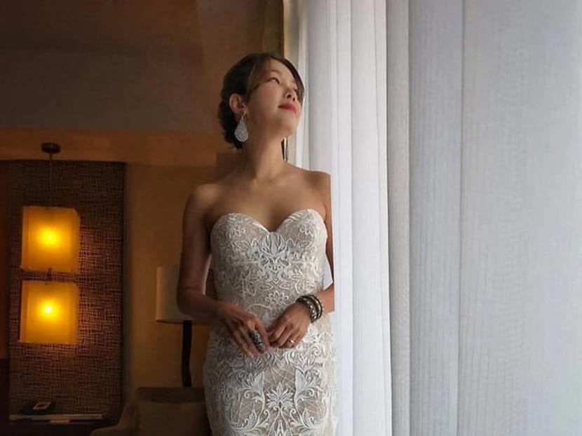 Isn't Kym a vision of elegance in this lace bustier gown Rebecca Caroline? The petite host loved the dress so much that she got the bridal boutique to design her Star Awards 2019 gown.