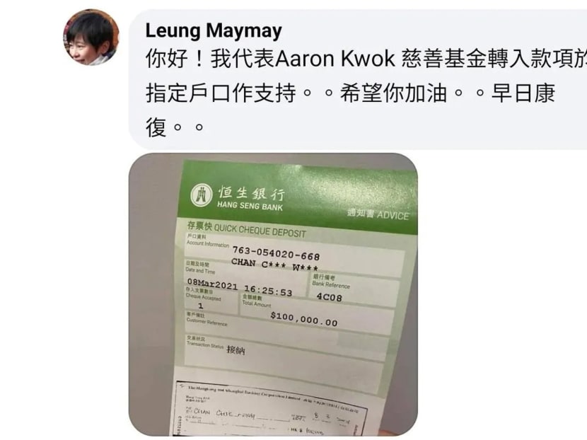 Even Aaron Kwok pitched in to help. According to Jeff, the generous Heavenly King made a HK$100,000 (S$17,300) donation through his Aaron Kwok Love And Concern Charity Fund and his manager Leung May May also left a message of encouragement.
