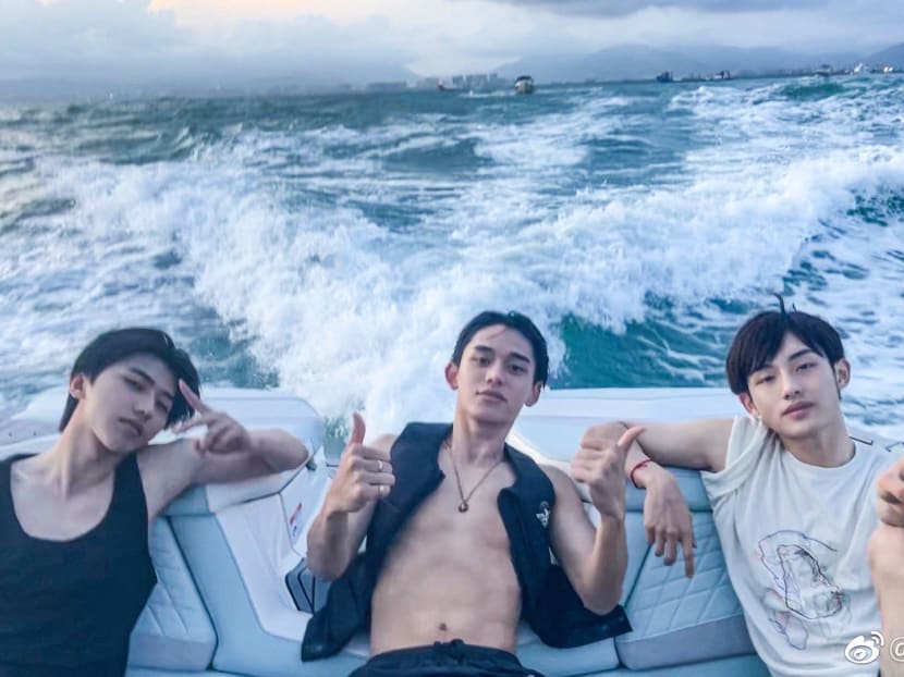 Internet sleuths soon determined that the man in the reflection was 22-year-old Chinese pop idol Cai Xukun, who had also shared a photo of himself on what was said to be the same yacht, in the same outfit.