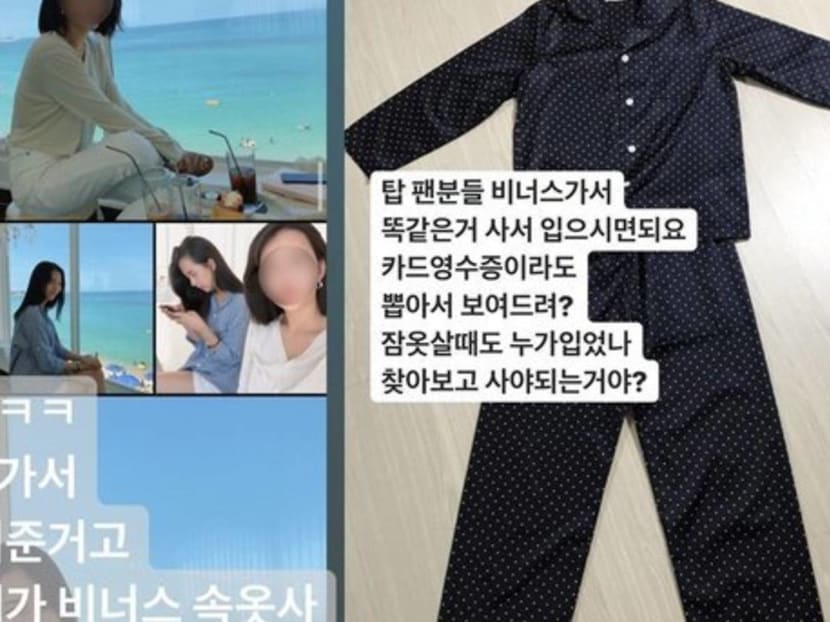 I took this photo of her on a family vacation, and I bought the pyjamas for her when I was buying one for myself too. It's a really popular brand. Fans of T.O.P can also go to the same store and buy the same ones to wear. Should I show you my credit card receipt? Do I need to search for anyone who has worn the same pyjamas before purchasing?” wrote Ga Bin’s sister, who attached the photos she took of Ga Bin while on vacation as well as another one of the pyjamas.