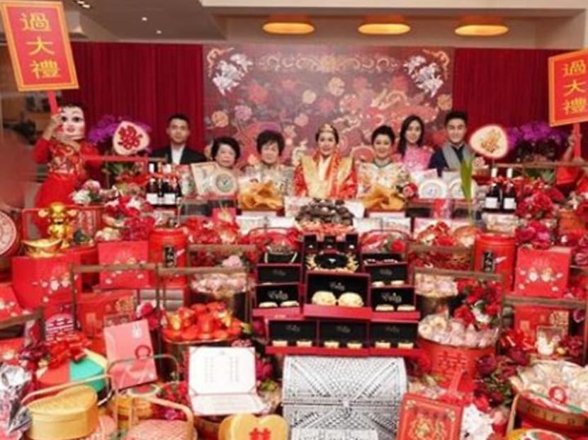 Macau casino tycoon Stanley Ho’s daughter, Sabrina Ho, 28, got engaged in June this year to Harvard student Thomas Xin Qilong, 21. The couple had an engagement ceremony, with Thomas’ family giving a S$100mil wedding dowry that includes stacks and stacks of gold bangles, diamond jewellery, Hermès goods and top-grade wine and abalone.
