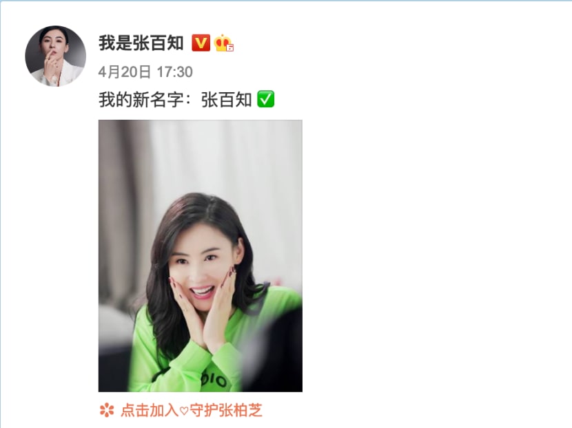 Last Tuesday (Apr 20), Hongkong actress Cecilia Cheung suddenly announced that she will be going by a new Chinese name, and that she's gone from “张柏芝” (Zhang Bo Zhi) to “张百知” (Zhang Bai Zhi). The 40-year-old even changed her Weibo name to “I am Zhang Bai Zhi” to further drive the point home.