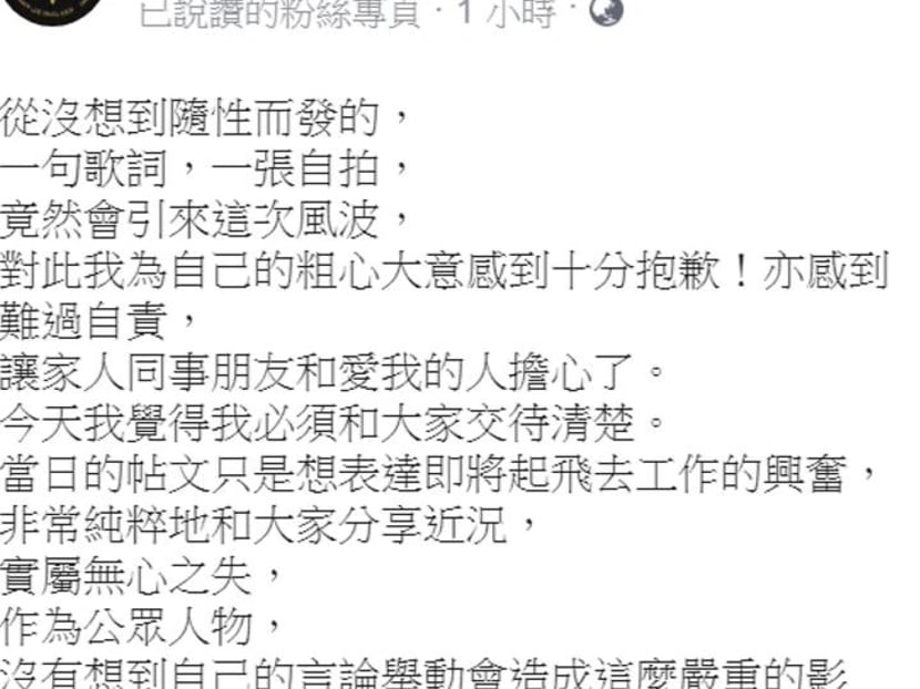 Yesterday (Nov 5), Joey posted an apology on Facebook where she denied being a pro-democracy supporter. She also revealed that her caption was a lyric taken from her song ‘Airport’, which is about flying.