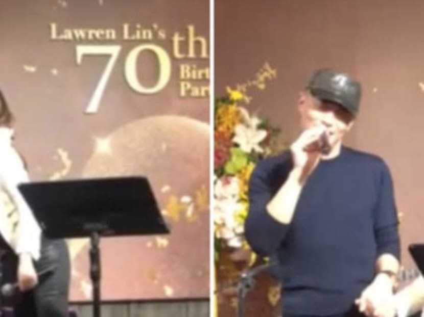 Last night (Nov 4), they finally silenced those Splitsville speculations in a very big — and very sweet — way. Ruby’s dad turned 70 and held a big celebration at a hotel with many celebs in attendance, including Vivian Hsu, Pauline Lan, Chen Meifeng, and of course, Ruby and Wallace, who arguably stole the show with their ultra-cute PDA.