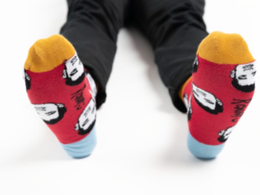 Sock it to them: The Ronny Chieng socks are sold on his website for US$12 (S$16) a pair. They are available in five colorways, Sky Blue, Mustard, Maroon, Olive and 'Special Edition' Red.