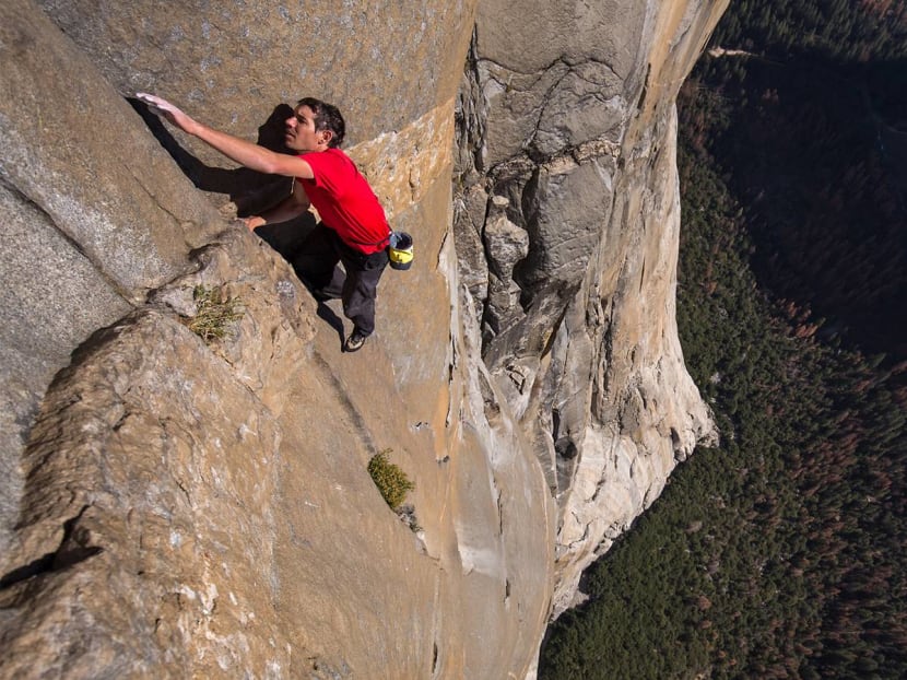 Alex Honnold became the first to free-solo (rope-less) climb to the top of the 1-km El Capitan, that's three times the height of Tanjong Pagar Centre, Singapore's tallest skyscraper. He completed the feat on Saturday, June 3, 2017, in three hours and 56 minutes. He did take a break (like answering nature's call), say the directors who left that footage out of the final film.