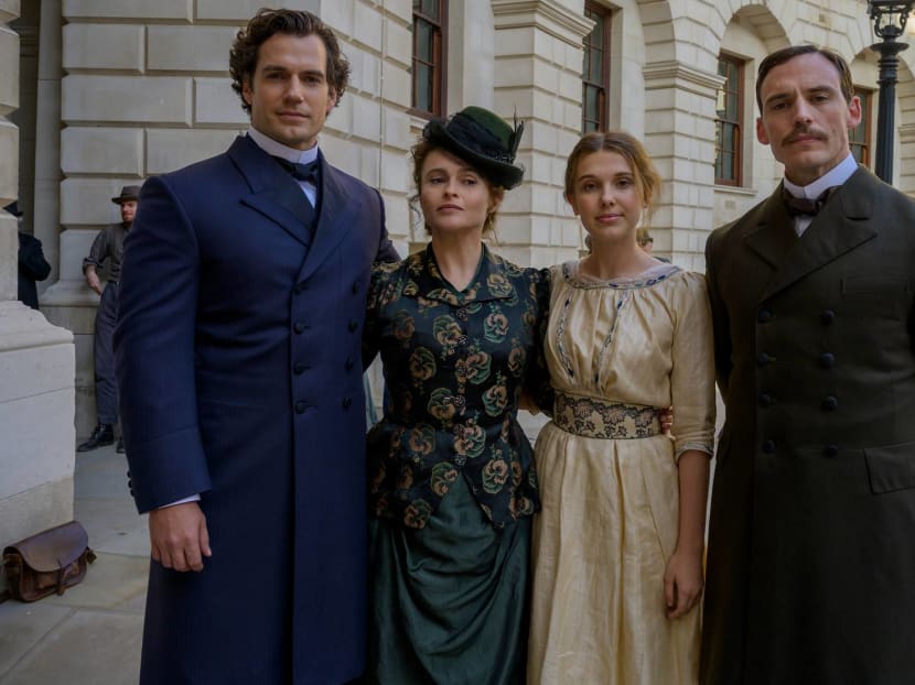 Keeping up with the Holmeses: (from left) Henry Cavill as Sherlock, Helena Bonham Carter as mummy Eudoria, Millie Bobby Brown as Enola, and Sam Claflin as Mycroft.