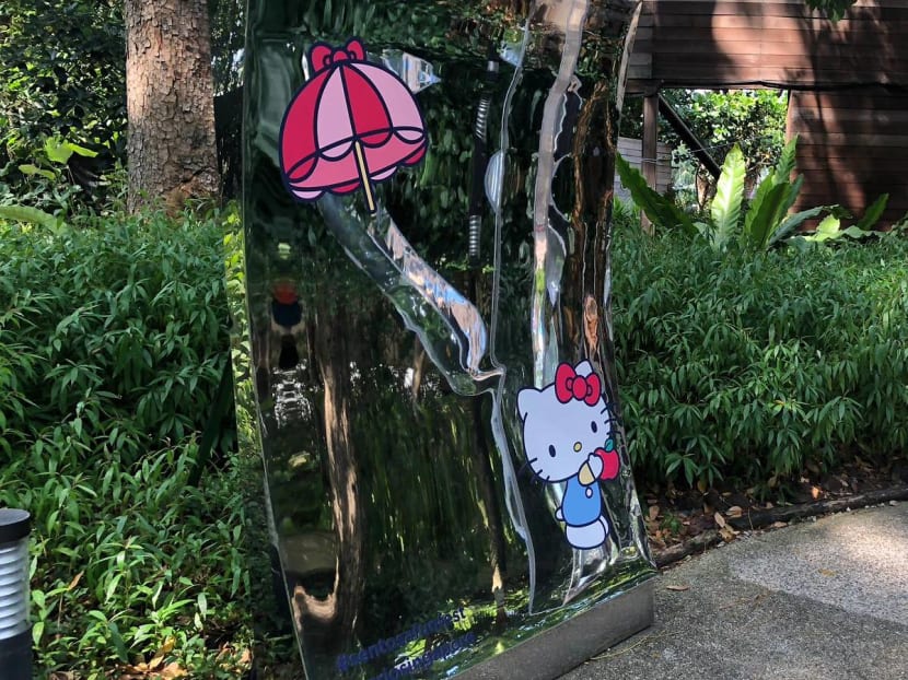 Right next to the Sentosa Beach car park is a Hello Kitty greeting guests.