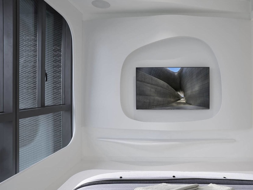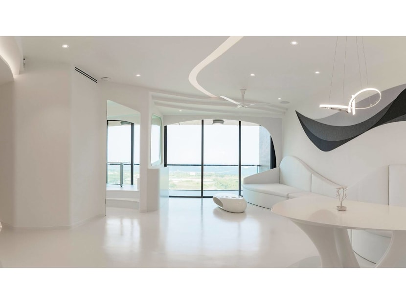 The design for this visually outstanding, futuristic all-white 1,518 sqft three-bedroom Marina One Residences apartment (yes, where Romeo Tan recently moved in to) was inspired by Passengers, the 2016 sci-fi flick starring Jennifer Lawrence and Chris Pratt.