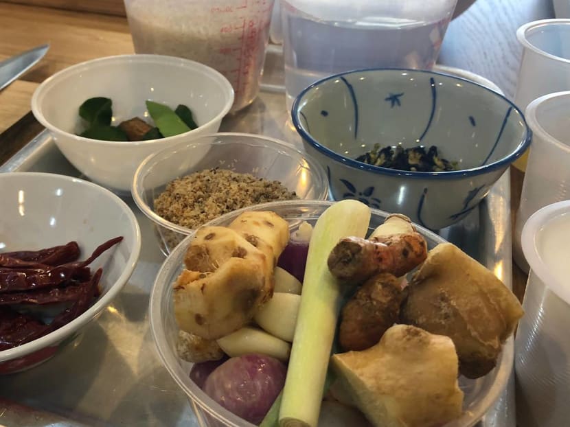 There's still a ton to do and our group splits the work evenly. There’s turmeric/lemongrass/shallots to chop up to blend for the chicken rendang. There’s the kueh dadar batter to mix, and then the silky thin crepe you have to actually cook. There’s also the chicken rendang you try not to under- or over-cook, and other nitty gritty things that people do to ensure the food is edible.