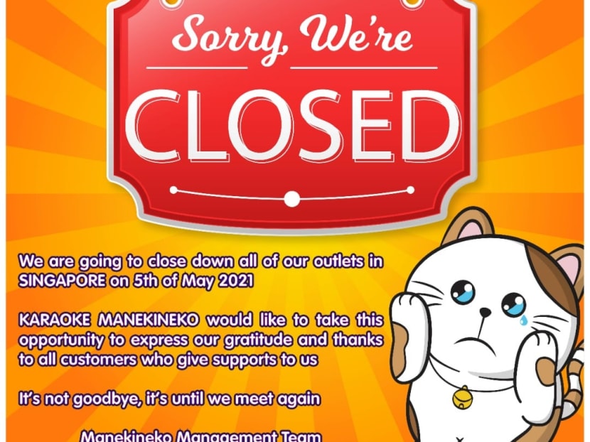 Karaoke Manekineko, a Japanese family karaoke chain, announced today (May 19) via a Facebook post that it had closed down all its outlets on May 5, before Phase 2 (Heightened Alert) kicked in on May 14. No reason was given for the delayed announcement.
