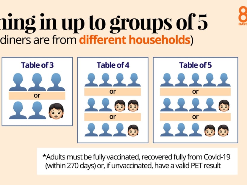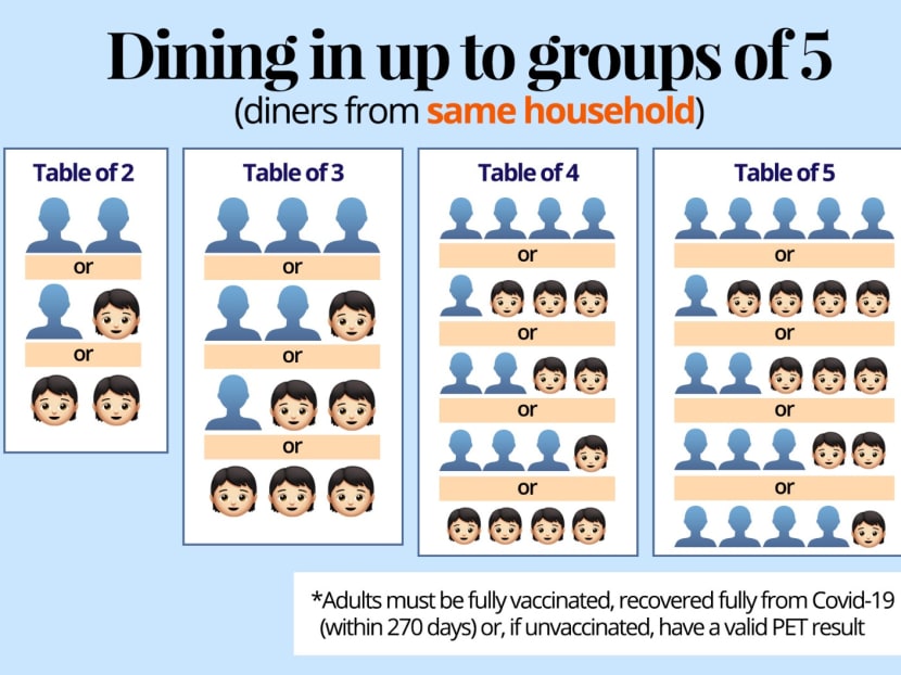 How many? Max 5 pax per table. No need for all individuals to be fully vaccinated.