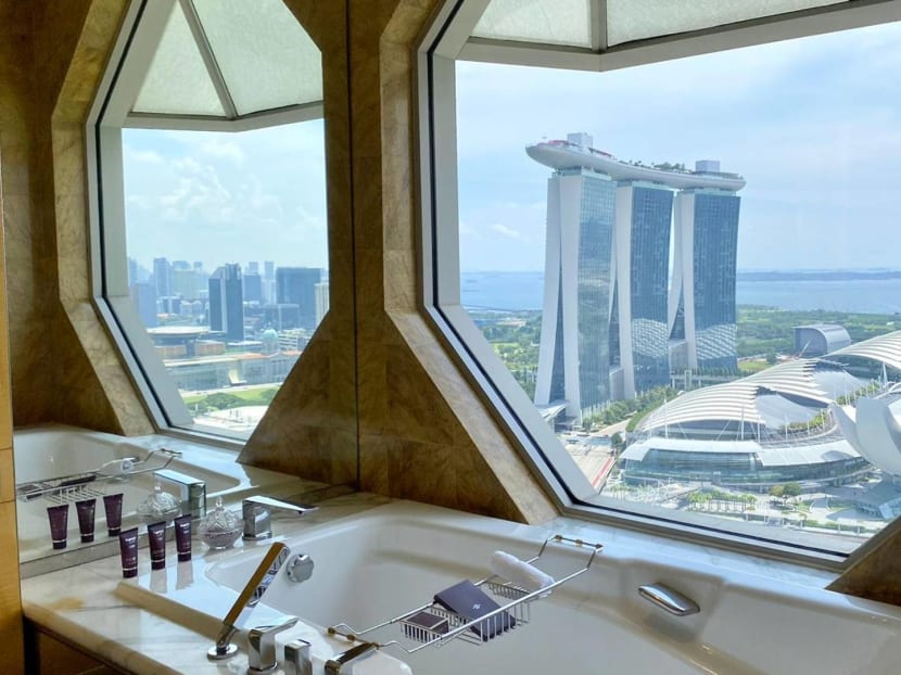 There’s complimentary parking for guests, and a car service to anywhere in the Marina Bay vicinity. But between lounging at the pool, hanging out at the Club Lounge and luxuriating in that bath, you probably won’t be thinking about nipping out of the hotel at all.