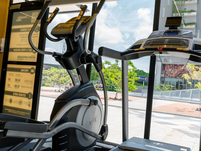 Launched in January, the sole Spin Pod at Changi City Point has six bikes (though only two are used now for safe distancing purposes), futuristic club-esque lighting that's typical of spin classes, and a giant screen that plays Les Mills-licensed spin class videos.
