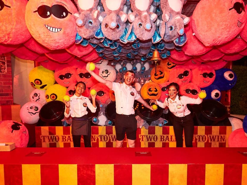 Pause for a little bit of carnival fun at these stalls where you can throw, slam and spin your way to win giant plushies. $5 for a single game, $10 for three games. Careful, though, there are roaming clowns that may thwart your best efforts.