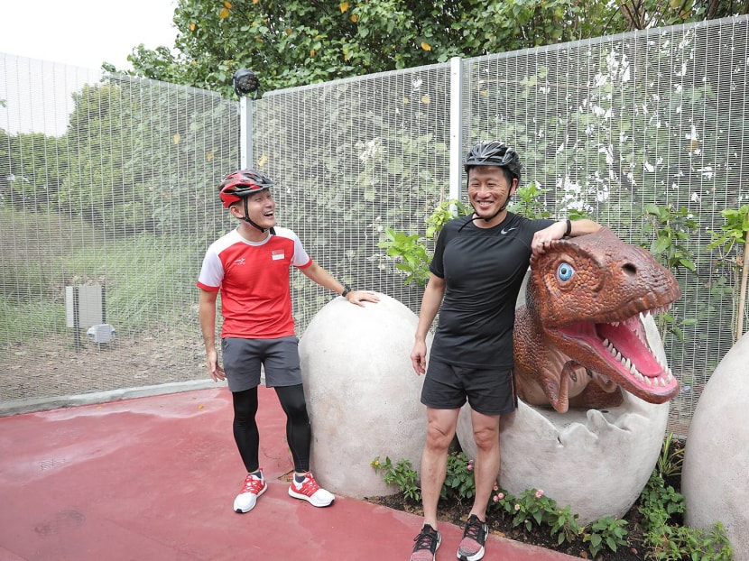 Transport Minister Mr Ong Ye Kung, who officiated the opening of Changi Airport Connector on Oct 11, poses with an egg-cited baby dinosaur.