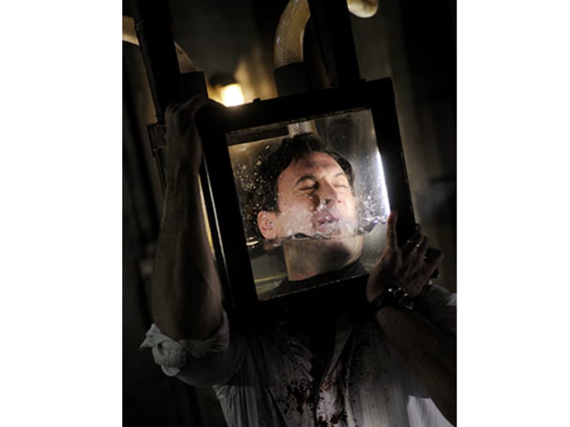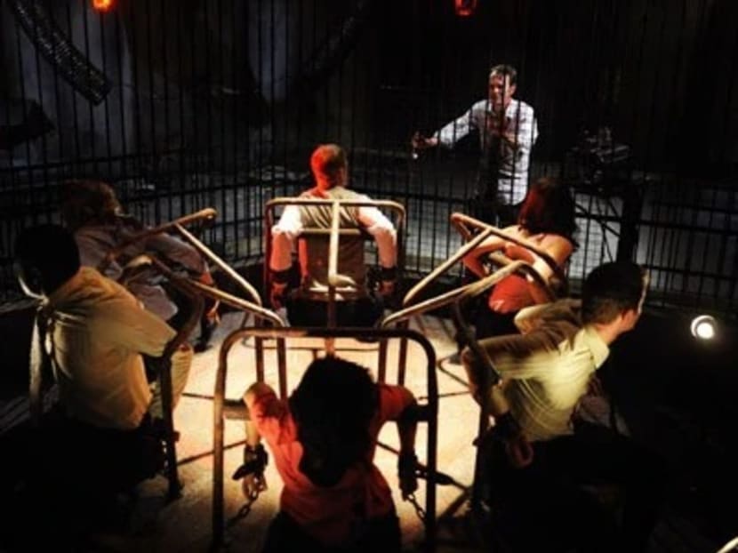 As seen in Saw VI (2009). Six victims are tied to a carousel, each positioned in front of a shotgun. The designated, er, ‘player’ can only save two of them. To do so, he must first pierce his hand with a metal spike. If he doesn’t sacrifice himself, all six victims will die. No pressure. Jigsaw has a future in designing theme park rides. Or maybe not.