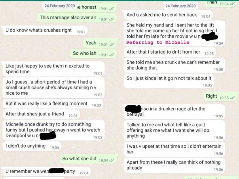 Ryan even claimed that one of those girls “pushed herself onto him”, although he rejected her advances. Sylvia shared that this woman was former NOC talent Michelle Tan, who has since “categorically [denied] the allegations of any intimate or inappropriate behaviour with Ryan” on her Instagram.