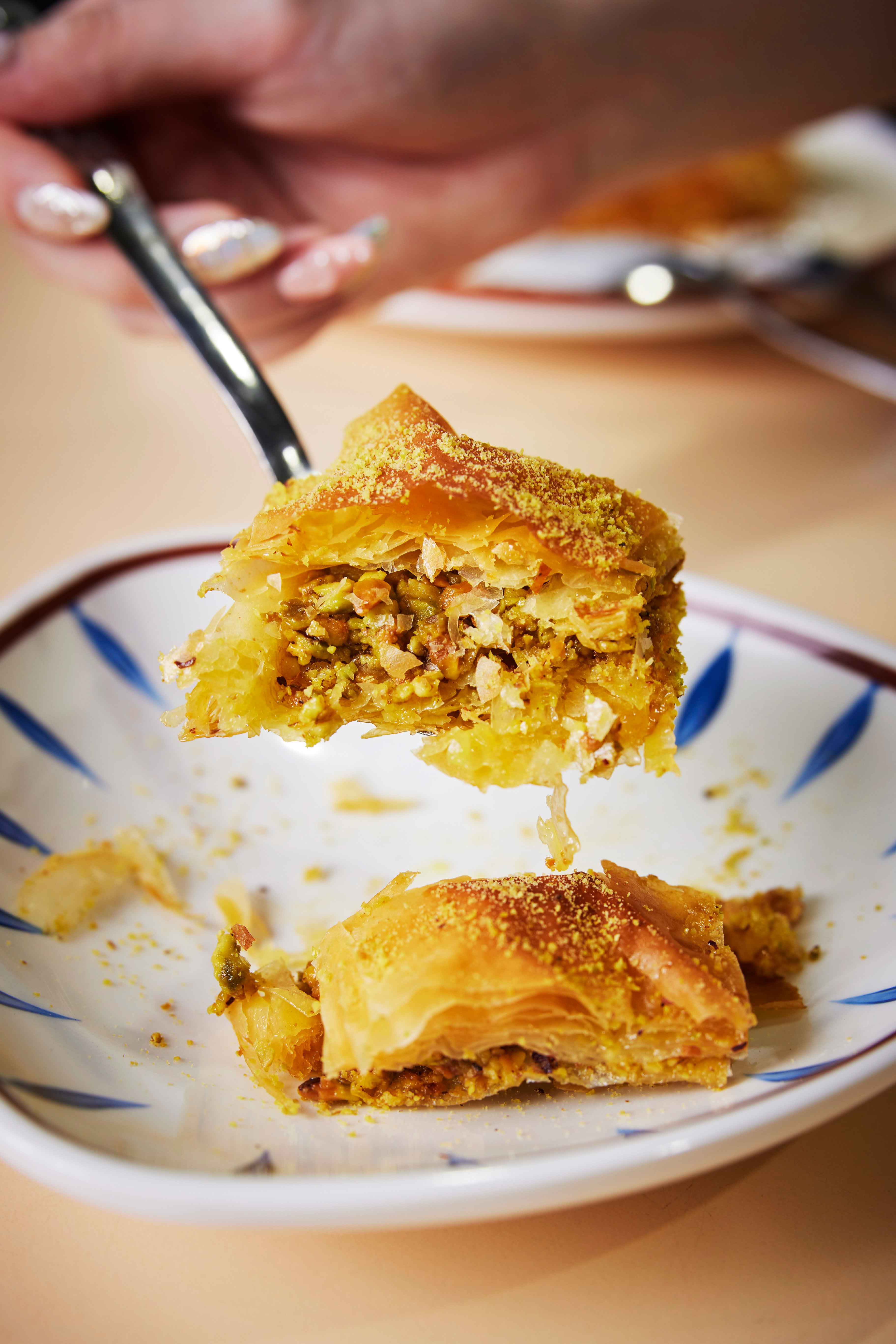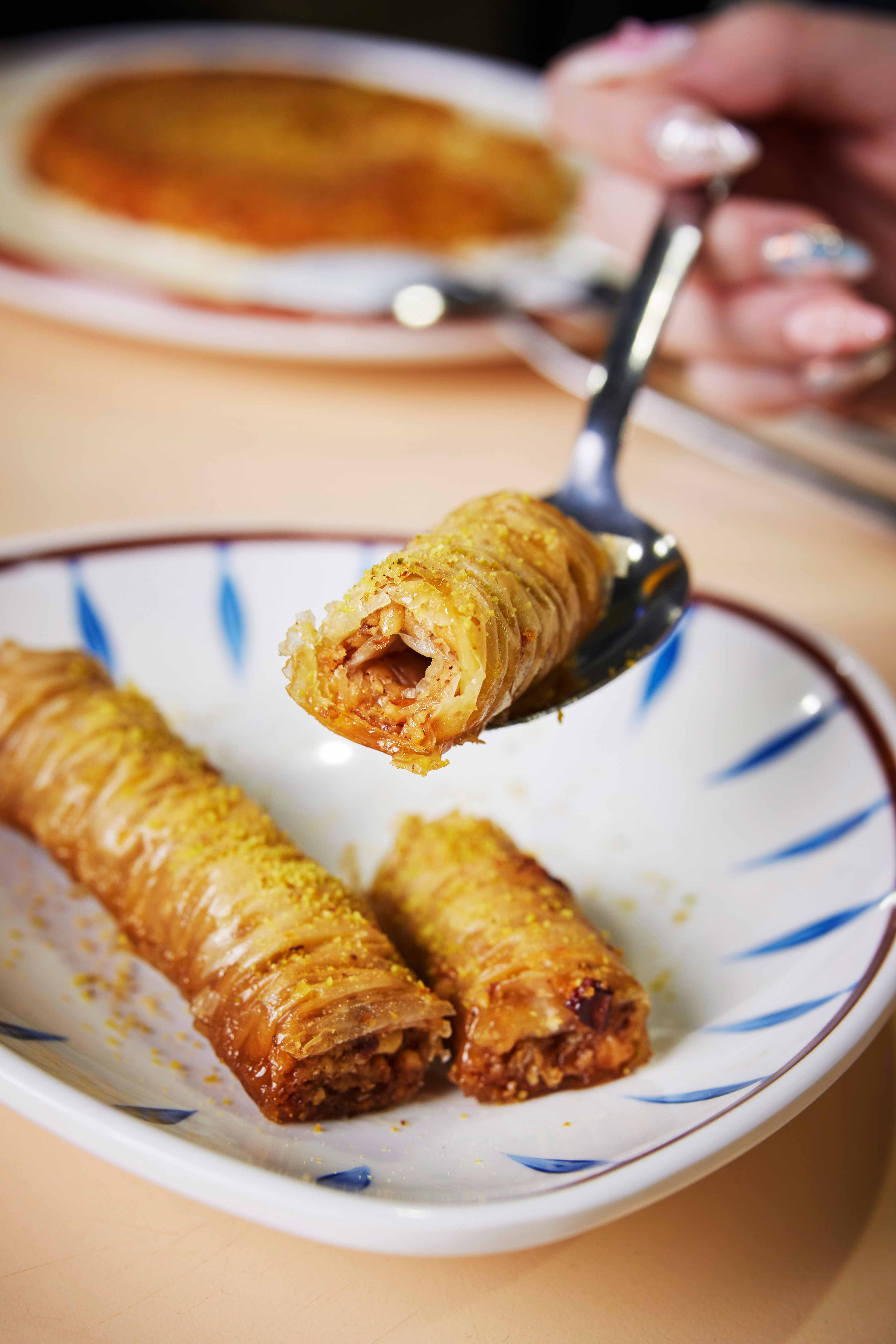 Fatih’s rendition of this sweet pastry popular in the Middle East is filled with pistachio or walnut.