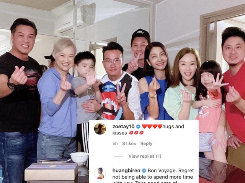 Bon Voyage. Regret not being able to spend more time with you. Take good care of yourself,” Huang Biren wrote, while Zoe Tay sent hugs and kisses” to them.