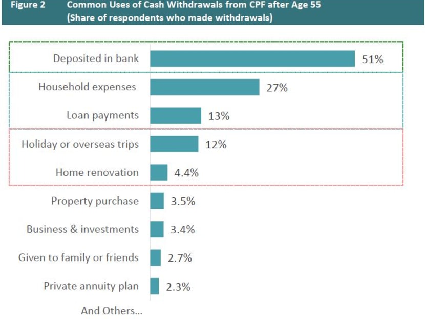 The survey was conducted to find out what CPF members did with their funds, if they cashed them out. Under existing rules, when CPF members turn 55, they may withdraw part of their CPF savings in a lump sum.