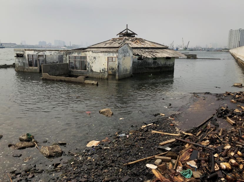 Visit the neighbourhood of Muara Baru in North Jakarta, and one can find an inundated mosque sitting in the sea behind a concrete seawall — another grim reminder of the city’s sinking problem.