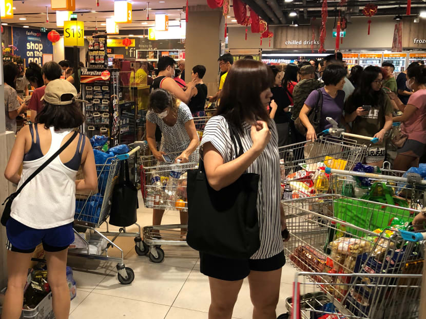 SINGAPORE — Tired and hungry after a long day at work, Mr Derrick Tay was looking forward to returning home for a warm shower, having something to eat and watching Netflix in bed. But something caught his attention while he was mindlessly thumbing through his phone in the train around 9pm on Friday a week ago: Images of shoppers making a mad dash for groceries at supermarkets across the island.