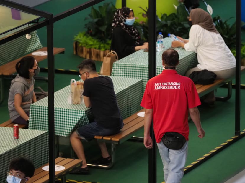While the Ministry of Sustainability and the Environment oversees safe distancing enforcement, safe distancing ambassadors are hired by 65 public agencies. These include Enterprise Singapore, the Urban Redevelopment Authority and the National Parks Board.