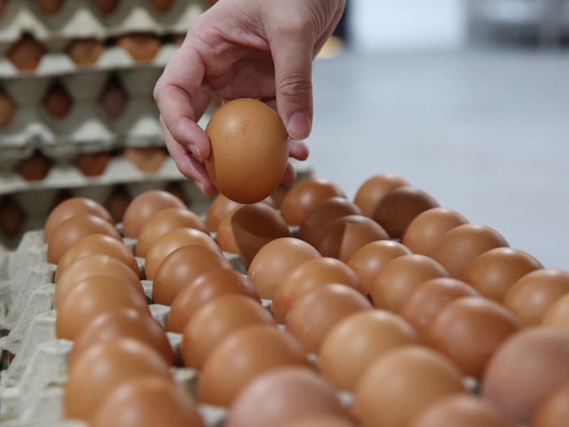 For example, a tray of 10 eggs weighing 60 grams each from Chew’s Agriculture costs S$3.65, whereas the same product weighing 55 grams per egg from Malaysia costs S$3.30 at NTUC FairPrice supermarkets.