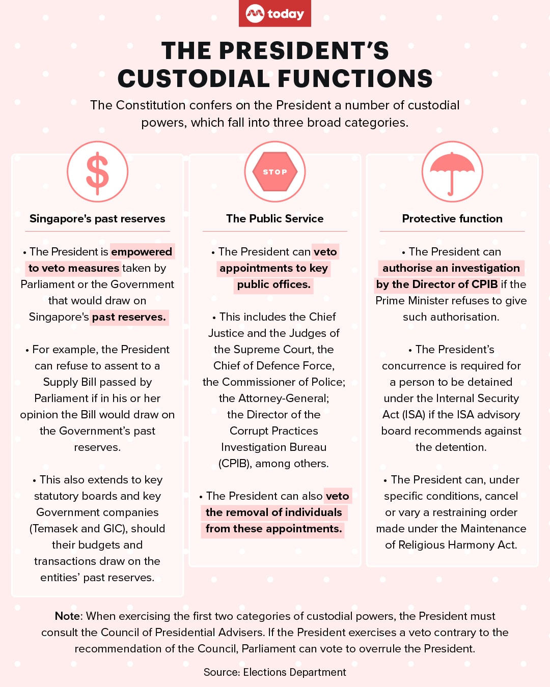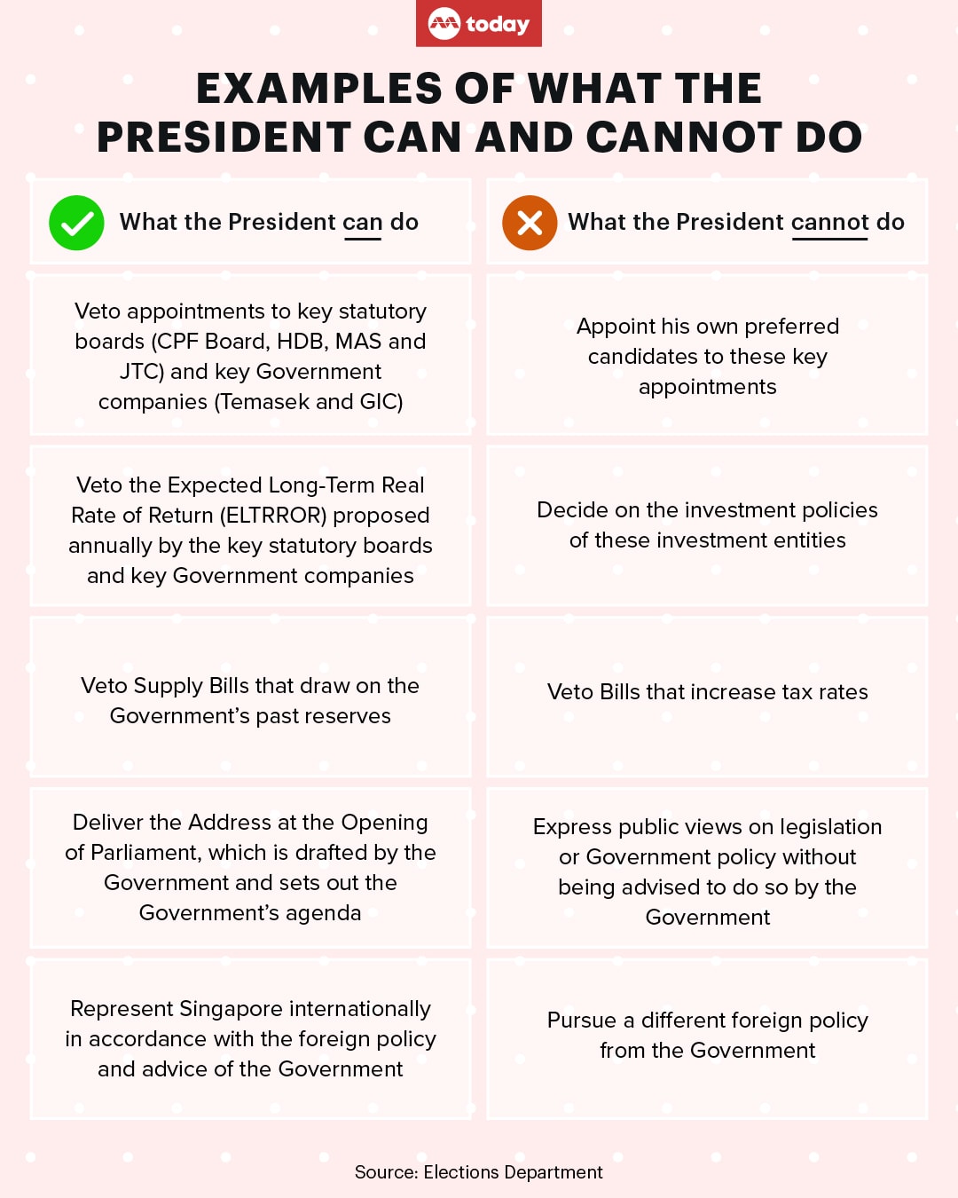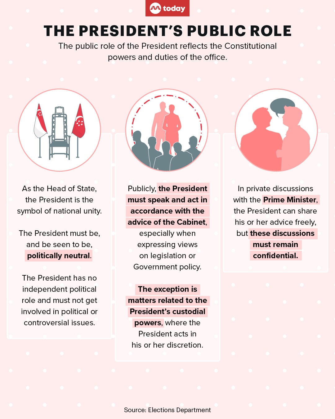 A recent survey by CNA and TODAY conducted with 1,500 Singapore citizens aged 21 to 33 who are eligible to vote in a PE for the first time found that most of them understood the roles and functions of Singapore's elected President, but were less clear about the head of state’s relationship with the Government.