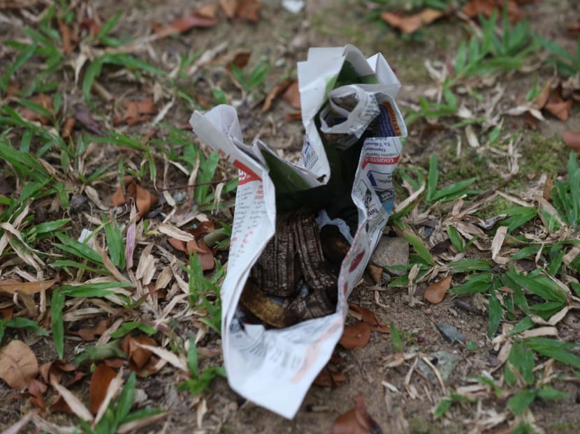 Mdm Tan also has to deal with a daily job hazard — mindless littering in its various forms, from dirty water being thrown out of flat windows to discarded banana peels strewn on grass patches. She was almost hit recently by leftover food wrapped in newspaper that was thrown from one of the upper floors.