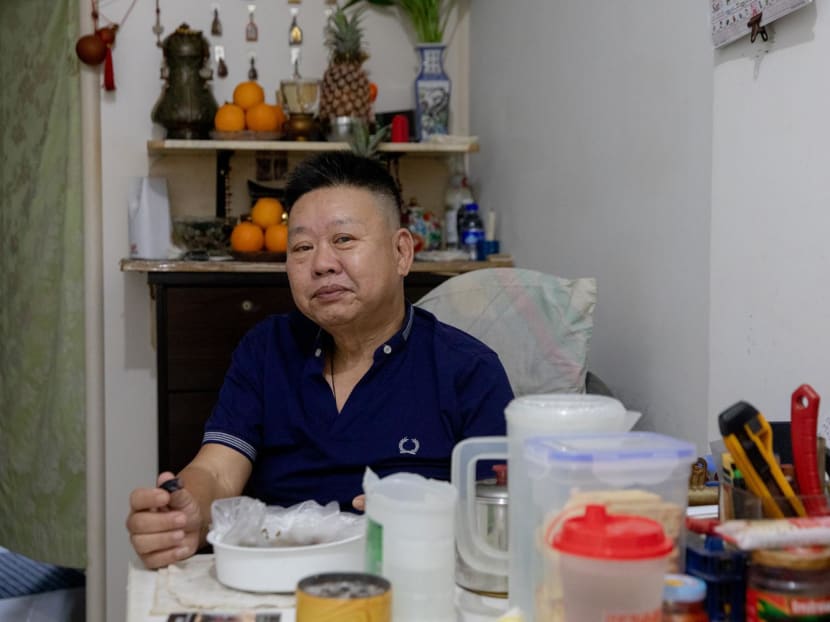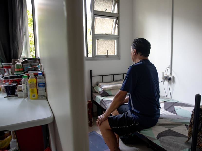 He cited cost as the main reason, since he is currently unemployed, after quitting his job as a freelance caregiver due to a back injury. He pays S$90 per month for the flat rental, including utilities.