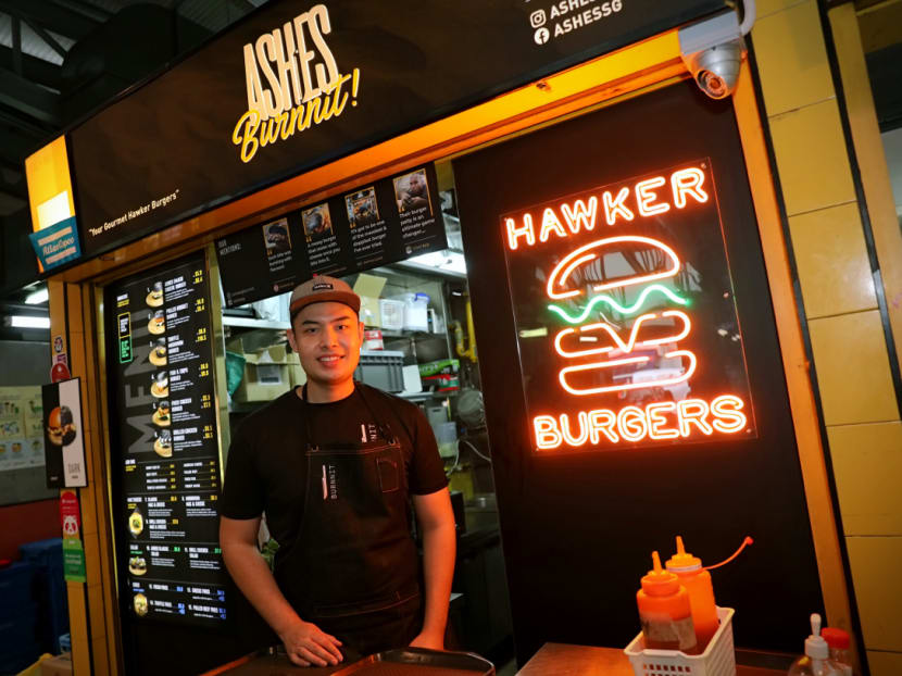 Rather than serve up regular local cuisine such as nasi lemak or even Western food such as fish and chips, Mr Syafiq chose to go with gourmet burgers to bring “a new vibe” to hawker centres here.
