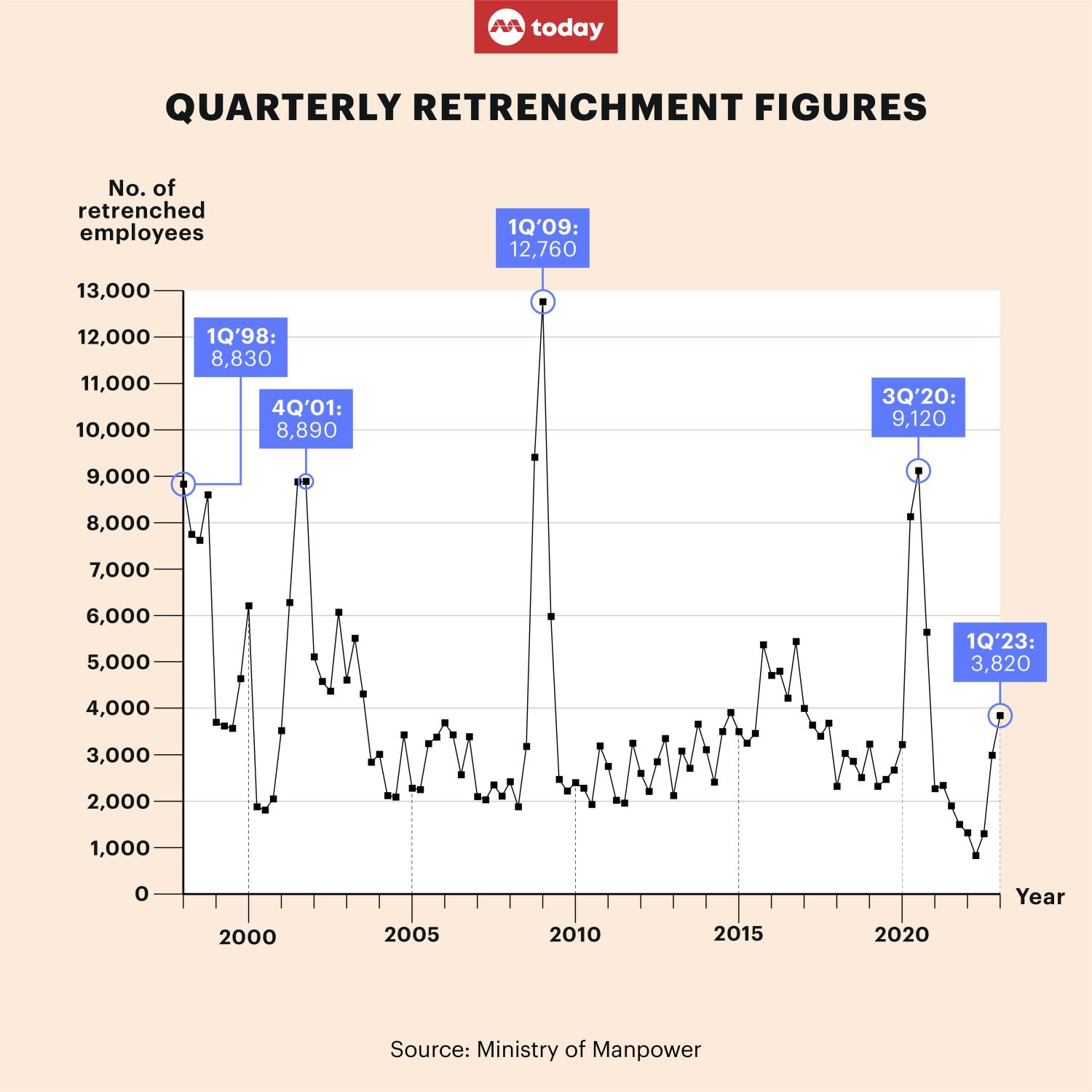 - Not long after quarterly retrenchment figures peaked during the Covid-19 pandemic, the number of layoffs here is on the rise again
