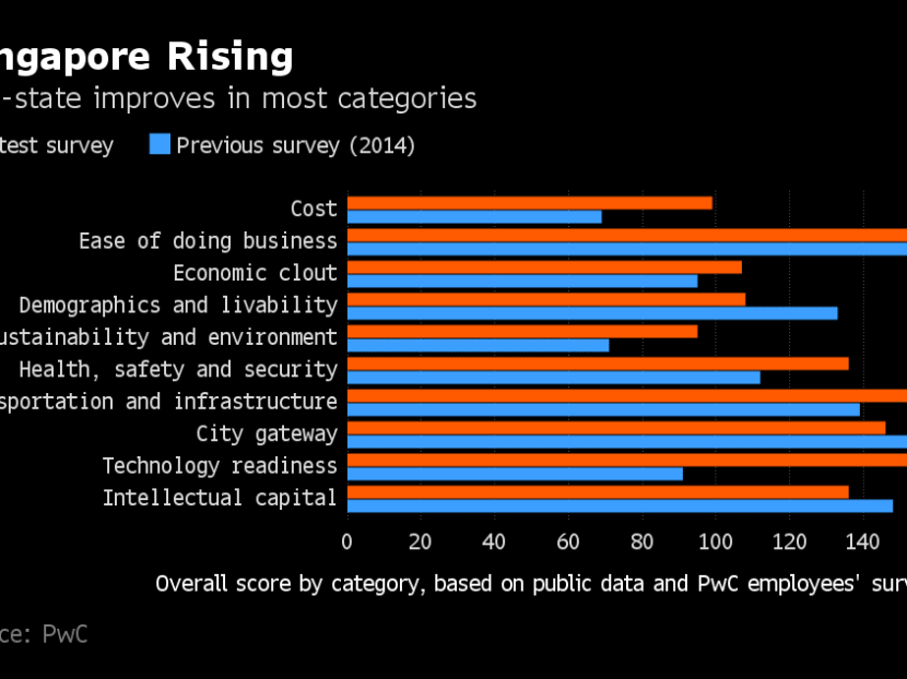 Superior technology, low taxes and efficient transport and infrastructure systems helped Singapore to overtake New York and move one notch higher in the rankings since the previous study in 2014, according to PwC.