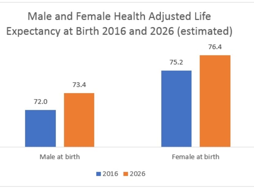 With improvements in healthcare, diet, and education, the estimated health-adjusted life expectancy (Hale) at birth is 72.0 and 75.2 years for men and women respectively in 2016. Hale is the number of years a person can expect to live in a healthy state on average.