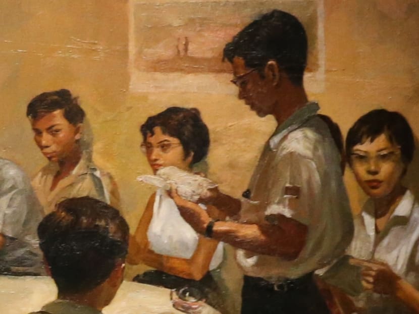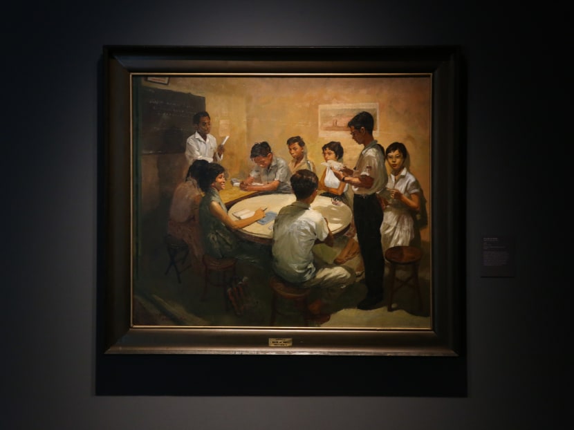 Even before taking its pride of place inside the museum’s DBS Singapore Gallery, Chua's 1959 social realist painting of people taking Malay language classes already had a long connection to one of the two historical buildings that comprise the National Gallery. Back in the 1960s, it was hung at the City Hall after S Rajaratnam, then-Minister for Culture, took a liking to it after seeing it at an exhibition.