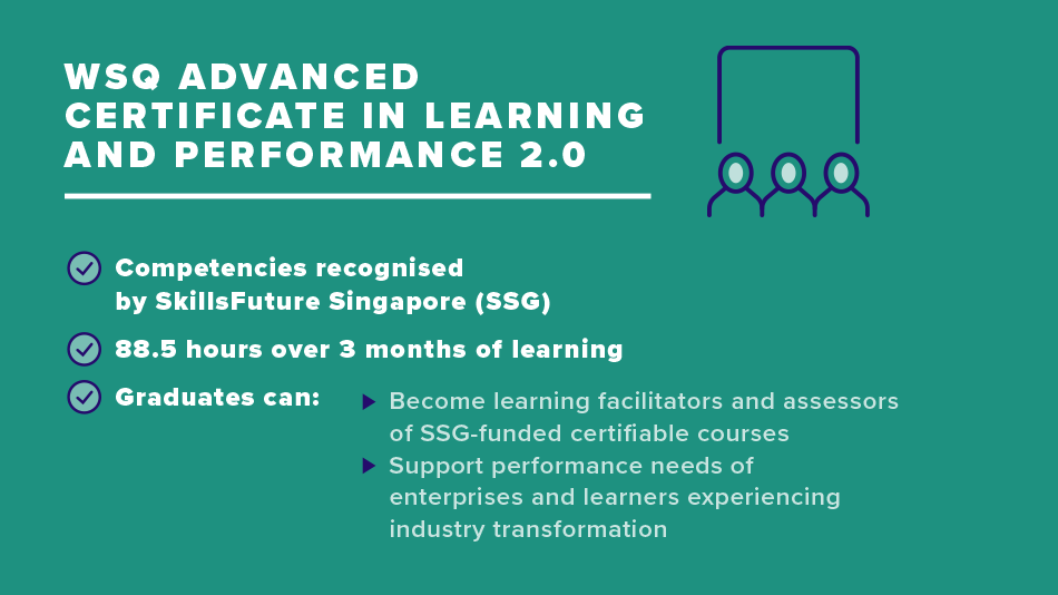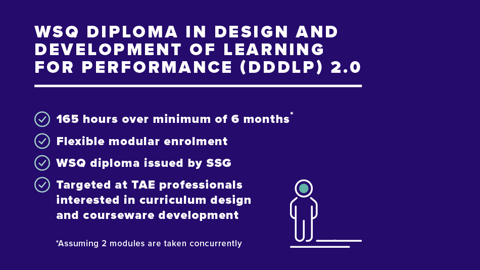 With so many new learners coming on board, there is a corresponding need for educators skilled in the field of training and adult education (TAE). The WSQ ACLP 2.0 and the WSQ DDDLP are IAL’s anchor programmes for aspiring individuals who wish to contribute to TAE.