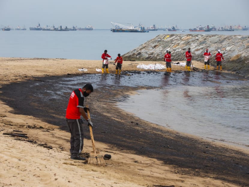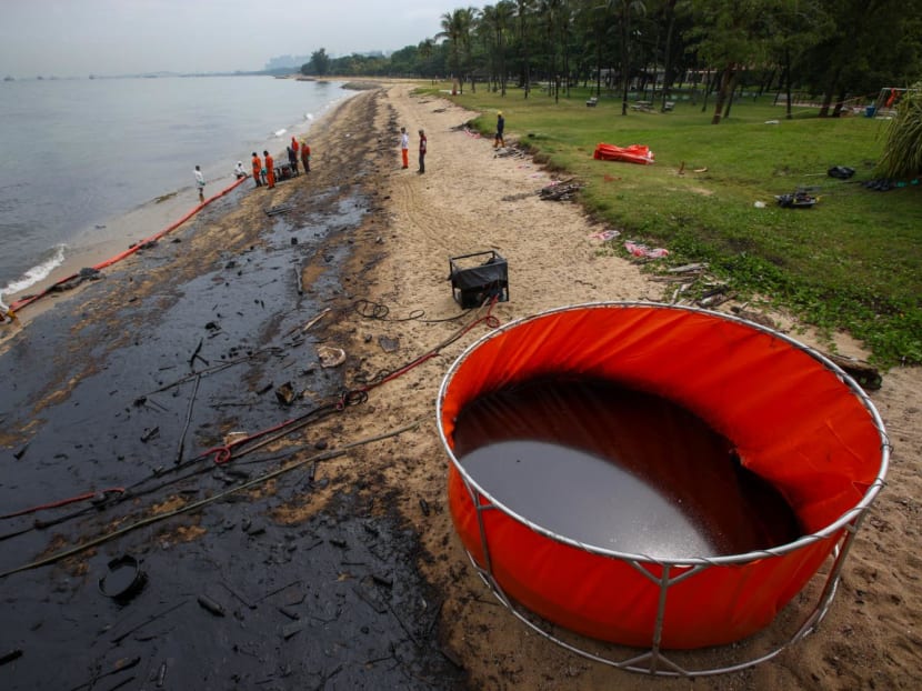 The authorities also noted that some of the oil was seen off Changi on Monday.