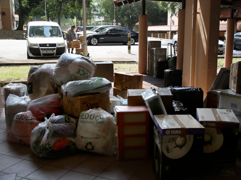 Ahead of their move, some residents of the 488-unit condominium had collected items such as metal plates marking the floors on lift landings, wooden signages indicating block numbers, as well as a stone bench with the words “donated by a grateful resident” painted on it.